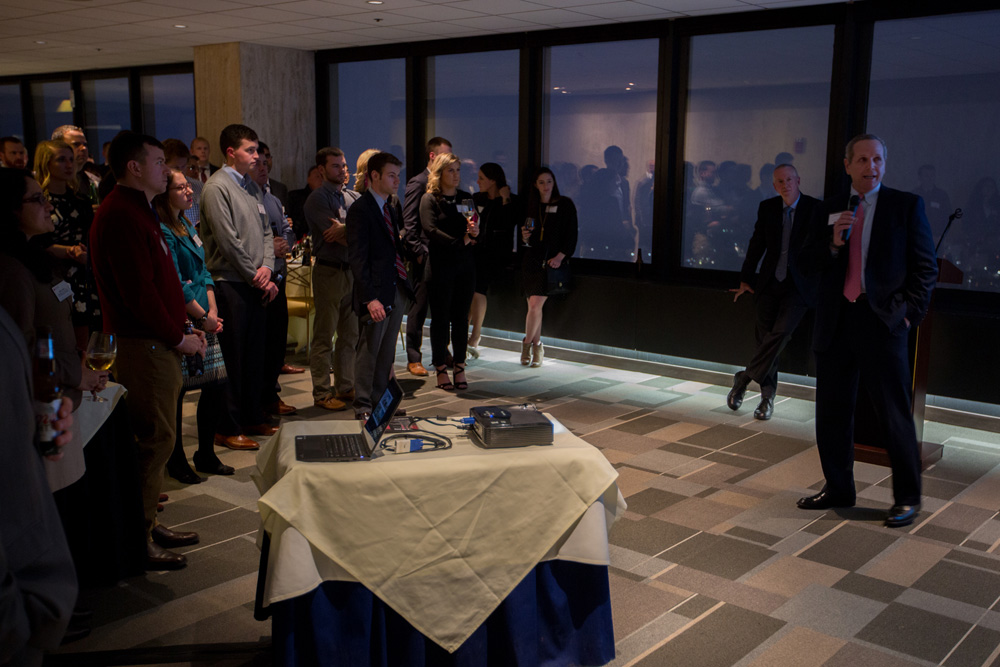 The Spring 2017 Boston Isenberg Alumni Night brought out over 170 alums, faculty and friends of Isenberg to the Top of the Hub—our highest attendance for an alumni night yet. Dean Fuller spoke about the new Business Innovation Hub, and alums also heard from Finance Professor Robert Feingold and MBA Associate Dean John Wells on recent news in both departments.