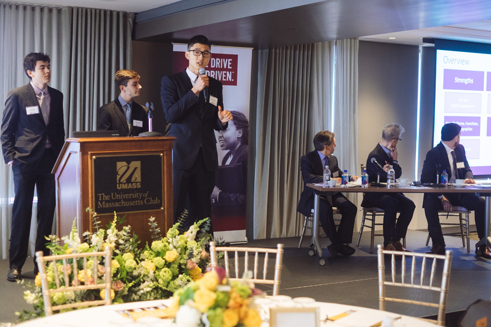 The first-ever Isenberg Pitch Conference was held at the UMass Club in Boston on April 21st, 2016. Six schools, including UMass Amherst, Amherst College, UConn, Brandeis, Harvard, and Yale, pitched stocks investment plans to a panel of three experienced veterans in the finance industry. The day also included an Investment Professional Discussion Panel and the 1st, 2nd and 3rd place winners of the pitch contest received monetary prizes.