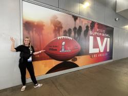 During her time in Amherst, Becca learned the value of building and maintaining meaningful connections. She also learned the importance of going deeper, rather than wider, while building her network. The relationships and network Becca cultivated started to open doors for her, including the opportunity to work at the 2022 Super Bowl and 2023 College Football Playoff National Championship, alongside Herold–who is now vice president of major events at the Los Angeles Sports & Entertainment Commission. For her summer internship in between the two years in the MBA/MS dual-degree program, Smith was looking for roles in strategy or market research and discussed her career ambitions with Danielle Byrd. Byrd was able to offer Becca visibility to open internship roles at MarketCast in Los Angeles and moved to hire her quickly after the initial interviews. Knowing the caliber of student she was going to get from UMass and hearing strong recommendations from both UMass faculty and her former manager and mentor, Karina, allowed Danielle to look no further and set up a robust intern experience for Becca during the summer of 2022.