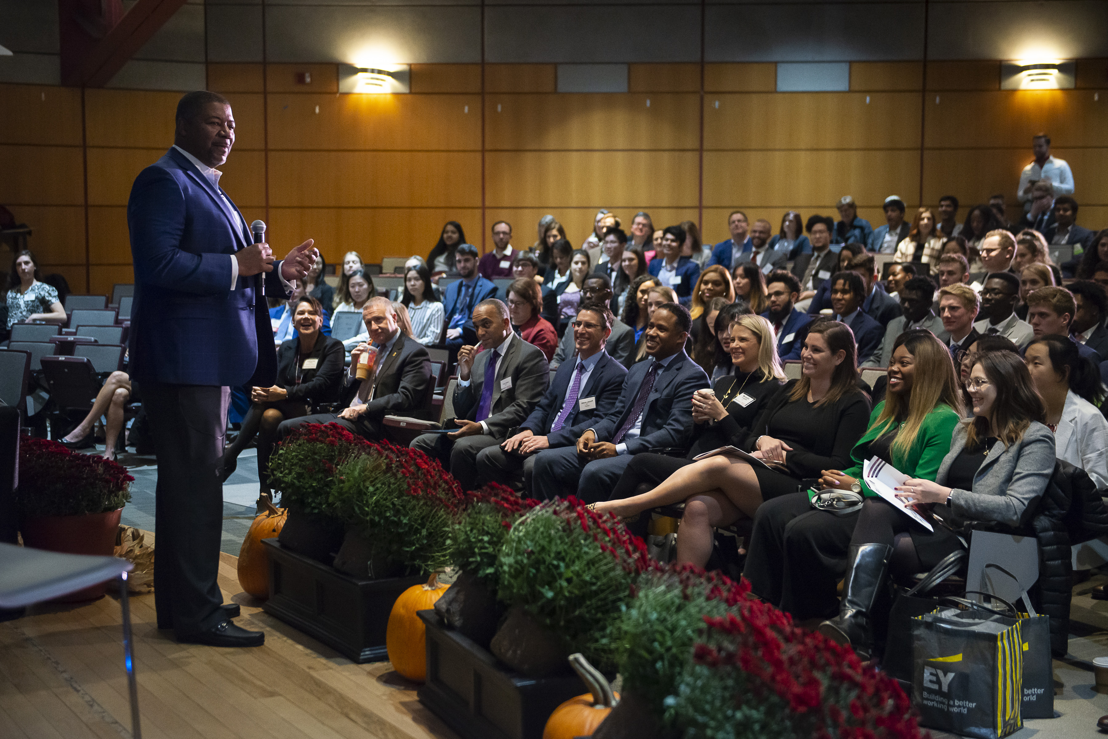 What makes you different adds value to the experiences of your coworkers and your firm, observed Ta-Von Wilson ‘14, a manager with EY. That includes generational distinctions. “Some people here [at EY] are finally younger than me. I am learning how to talk to them.” Understanding differences, of course, includes cultural and economic perspectives. “Take a section of those you’ve texted at the conference today,” he told the students. “If they all look like you, find someone different at this summit.”